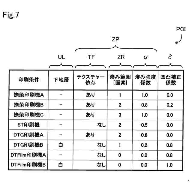 しかしながら、本開示の発明者は、布地などの特定の印刷媒体に印刷した印刷物ではインクの滲みの影響が大きいため、プルーフ画像の作成時に滲みの影響を考慮すべきことを見出した。滲みは、印刷媒体上に着弾したインクが印刷媒体に染み込む前に、インクが広がったり、隣接する別のインクと混ざったり、印刷媒体の凹凸の影響を受けてインクが流れたりして生じる。そこで、印刷物の状態を忠実に再現するためには、滲みの影響をプルーフ画像データに反映することが望まれる。