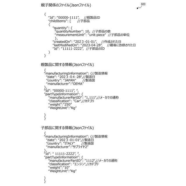 本発明の実施例1に係るシステムが保持するトレーサビリティ情報の形式の別の例を示す説明図である。