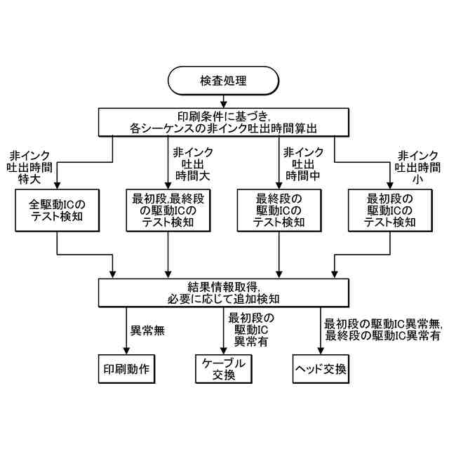 しかし、特許文献1、2のインクジェット記録装置、記録装置は、複数のノズルに対応する1つの駆動ICにおける信号の不具合しか検出できない。駆動ICは、1つの(インクジェット)ヘッドあたり複数用いられる。全ての駆動IC(集積回路)の信号線について検知を行うことが理想である。しかし、紙間などの限られた時間に信号検知を行うためにも、効率よく行う必要がある。