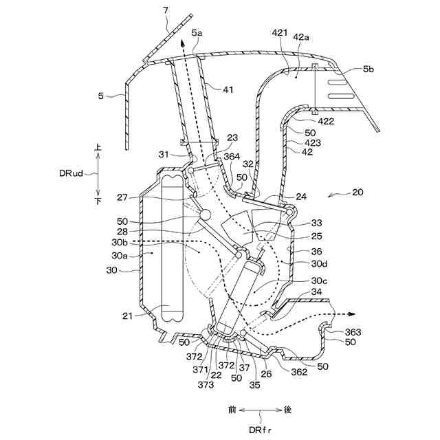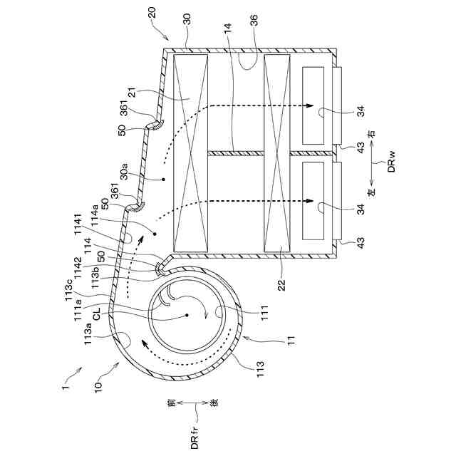 しかしながら、空気流路内に設けられた突起は、空気流路内を空気が流れる際の抵抗となる。このため、当該突起は、空気流路内に突起が存在しない場合に比べて空気流路内を空気が流れる際の圧力損失が増加する要因となる。さらに、空気流路内に設けられた突起は、空気流路内を空気が流れる際に、当該突起に空気が衝突することで発生する新たな音の発生要因となる。