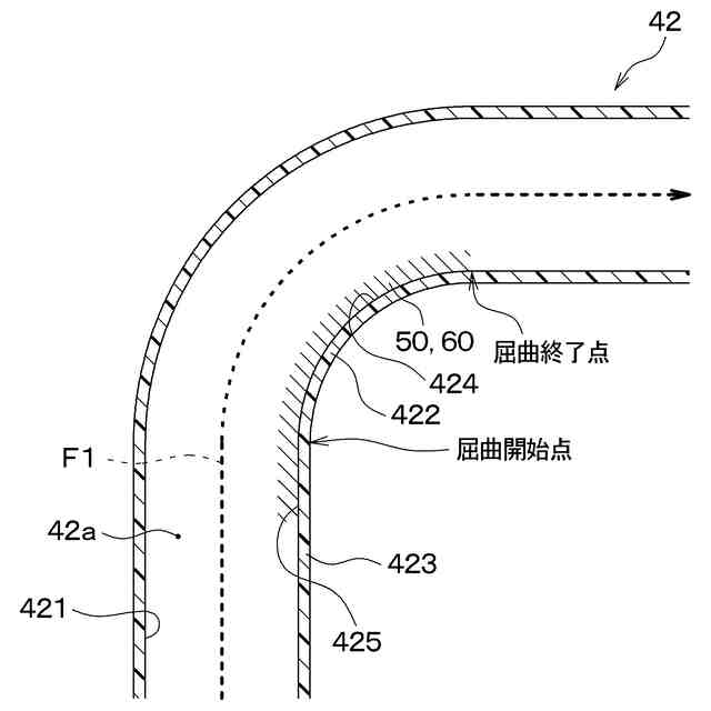 空気流路部の内壁面に対して窪んで形成され、内壁面に並んで設けられる複数の溝(60、61、62、63、64、65、66、67、68)と、を備え、