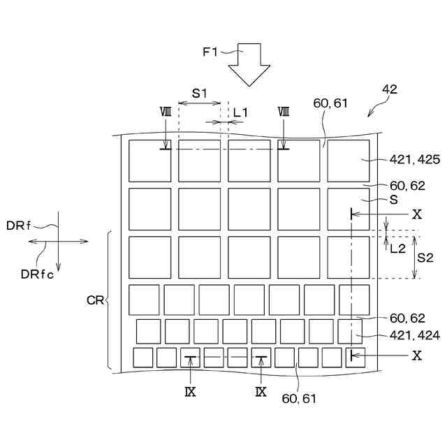 前記複数の溝は、前記空気流れ方向に交差する方向に沿って延び、前記空気流れ方向に並んで設けられる複数の第2溝(62)を含み、