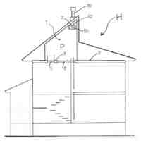 上記四角柱における1つまたは複数の柱コーナー部に角部を向けて配置され、上部側が建物の屋根構成材に固定される1つまたは複数の四角筒部材と、