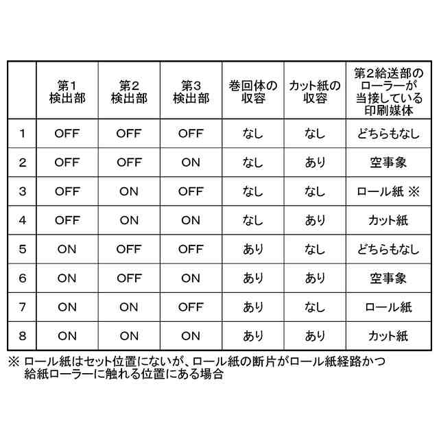 印刷装置1による印刷媒体の収容状況の検出結果の一覧を示す図である。