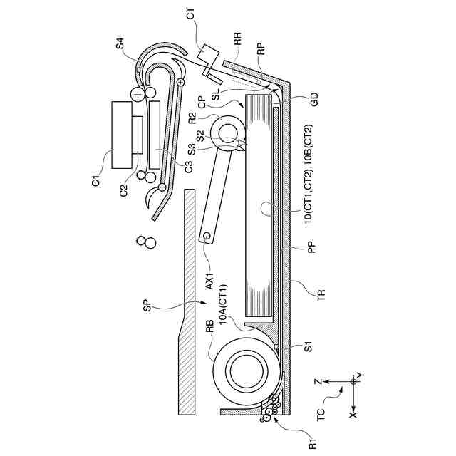 第2実施形態の変形例2に係る給紙トレイTR2の一例を示す側面断面図である。