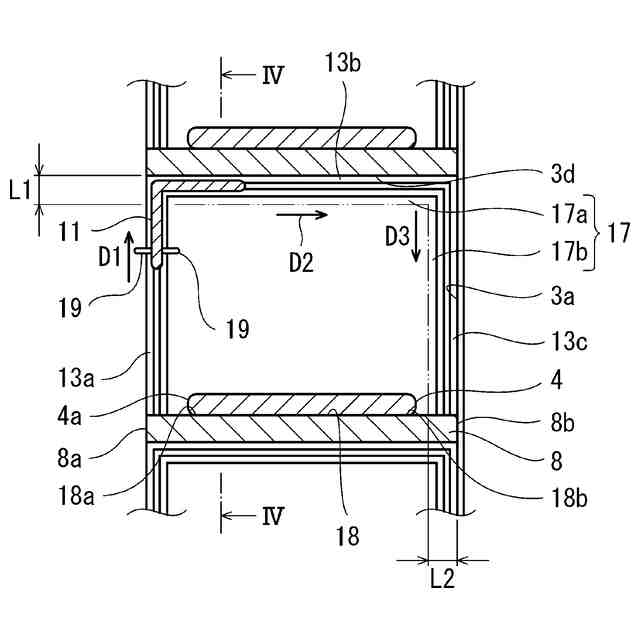図3のIV-IV線に沿う断面図である。