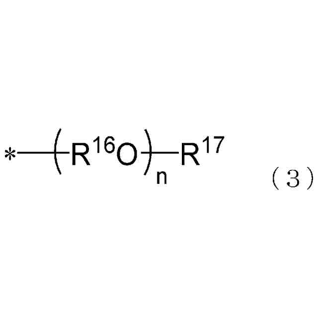は、相互に独立に、炭化水素基又は鎖状若しくは環状のエーテル構造を有する基を示す。)を示す。〕