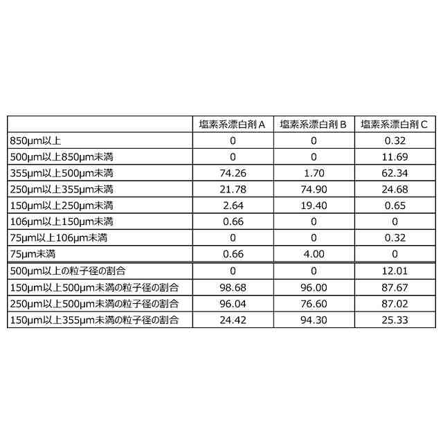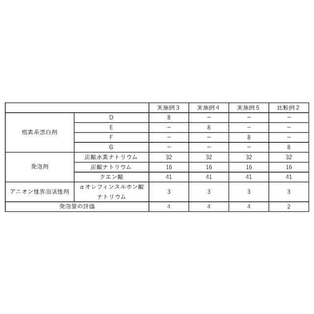 本発明者は、前記課題を解決すべく鋭意検討を行ったところ、発泡剤を含有する発泡性組成物に、特定の粒度分布を有する塩素系漂白剤を配合することにより、意外にも発泡性組成物の発泡力が向上することを見出した。本開示は、かかる知見に基づいて更に検討を重ねることにより完成したものである。