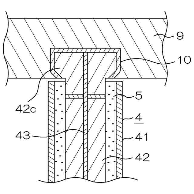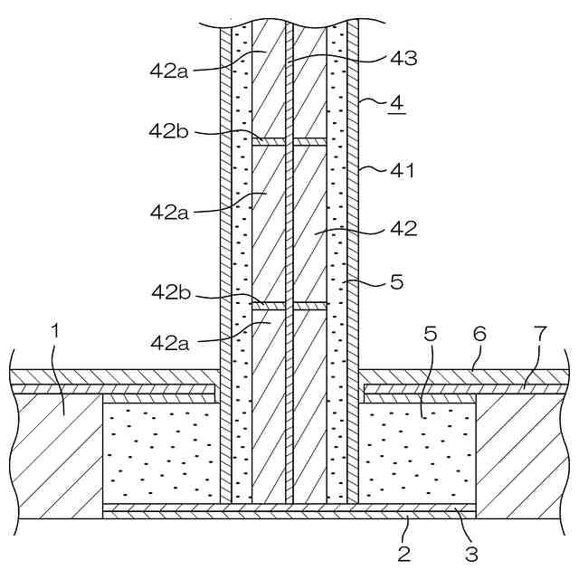 この場合、蓋により粒状物が収容部から外に飛散するのを防ぐことができる。また、柱が蓋の孔を貫通しているので、地震の際に柱の位置が水平方向にずれるのを抑えることができる。
