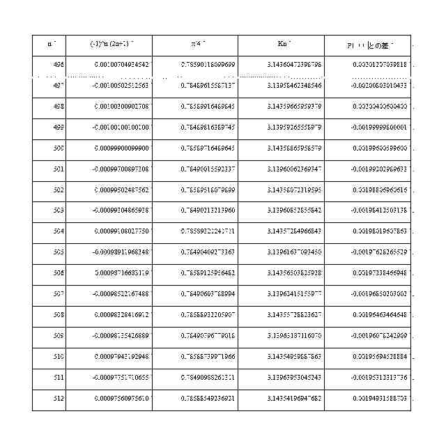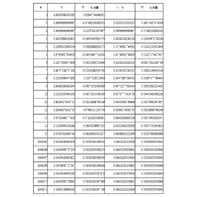 発明の詳細な説明【技術分野】 【0001】 本発明は、立体グラフに関するものである。 続きを表示(約 1,500 文字)【背景技術】 【0002】 日本国特許登録第5992740号は私が権利を有する。 しかし、この10年で、昨年末アメリカの公的機関の低次元の実施つまり非特許文献1があったのみである。 SNS上では高評価であったようであるが、その後の発展は聞かない。 人々にはこの発明が他分野でも利用可能であることが理解されていない。 この改善策として、この発明を数学の分野で使用し、二次元のグラフより優れていることを証明し、副次的に数学が面白いものであることを啓蒙する。 【先行技術文献】 【特許文献】 【0003】 日本国特開2014-010727号公報 【非特許文献】 【0004】 Authors & editors: Robert Nemiroff(MTU) & Jerry Bonnell (UMCP), “Astronomy Picture of the Day”,〔online〕,2022 August 22,NASA Official: Philip Newman Specific rights apply,令和6年4月29日検索,インターネット, <URL:https://apod.nasa.gov/apod/ap220822.html> 【0005】 編集:松元隆二,”円周率の公式集“,〔online〕,2021 年 8 月 14 日, 令和6年4月29日検索,インターネット, <URL:http://www.pluto.ai.kyutech.ac.jp/~matumoto/dvi/pi.pdf> 【発明の概要】 【発明が解決しようとする課題】 【0006】 解決しようとする問題点は、前記特許が地球温暖化を表すグラフとしか認識されていないことにある。 【課題を解決するための手段】 【0007】 本発明は、上記特許を実施することにより、現象を定量化し、立体化して現象を理解することを目的とする。 【発明の効果】 【0008】 本発明により難解で複雑な現象の理解が深まる。 【図面の簡単な説明】 【0009】 図1は、3DCAD と前記特許を用い今回使用した座標を入力および出力したものである。 図2は、図1に単位1を入力し、出力したものである。 図3は、表2を3DCAD で描画したものである。 図4は、別の D n の求め方の説明図である。 図5は、図3の A 矢視である。 収束値が円筒形であると仮定し、それを図3、図5に重ねたときの B 矢視拡大図である。 図7は、2DCAD を用い図6の平面図を作成したものである。 図8は、図7の C 部拡大図である。 【発明を実施するための形態】 【0010】 現象を捉えるのに人は現在、二次元グラフを用いている。 中には3D 機能を有するものがあるが、座標が曖昧で理解が深まらない。 この問題を解決したのが私の前記特許であるがこの10年泣かず飛ばすで、ようやく昨年、低次元の実施非特許文献1があった程度である。 人々はなかなか理解してくれない。 そこで今回は円周率πを実施例にあげ前記特許の有効性を理解してもらう。 副次的に数学の面白さも披露する。 【実施例】 (【0011】以降は省略されています) この特許をJ-PlatPat(特許庁公式サイト)で参照する