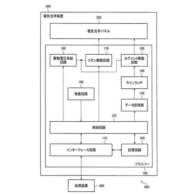 また、本開示の他の態様は、電気光学パネルを駆動するドライバーであって、ドライバーの第1辺に沿って連続して配置される第1端子群と、前記ドライバーの前記第1辺に沿って連続して配置される第2端子群と、を含み、前記電気光学パネルは、透明な第1基板と、前記第1基板に対向配置される第2基板と、前記第1基板に配置される第1セグメント電極群と、前記第2基板に配置される第2セグメント電極群と、前記第2基板に配置され、前記第1セグメント電極群に対向配置される第1コモン電極群と、前記第1基板に配置され、前記第2セグメント電極群に対向配置される第2コモン電極群と、を含み、前記第1端子群は、前記第1セグメント電極群にセグメント駆動信号を供給する第1セグメント端子群と、前記第1コモン電極群にコモン駆動信号を供給する第1コモン端子と、を含み、前記第2端子群は、前記第2セグメント電極群にセグメント駆動信号を供給する第2セグメント端子群と、前記第2コモン電極群にコモン駆動信号を供給する第2コモン端子と、を含むドライバーに関係する。