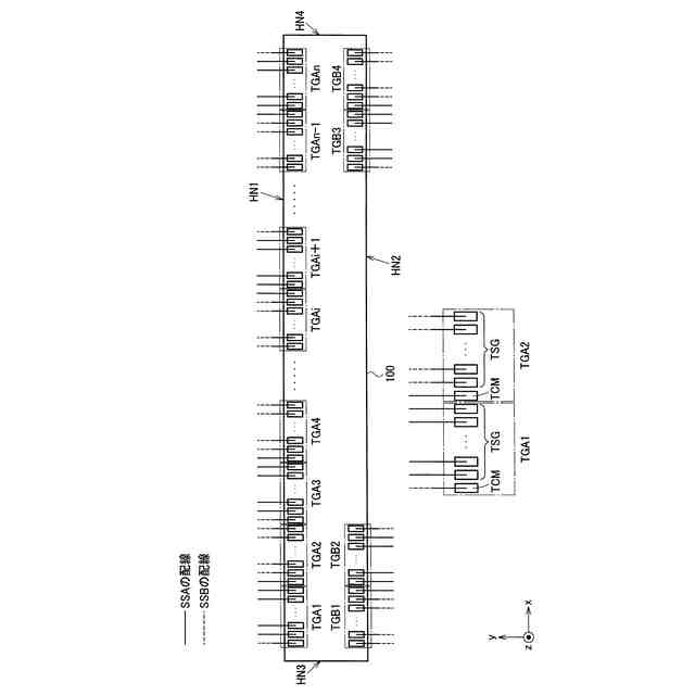 本実施形態の電気光学装置については図3以降で説明する。その前に図1と図2を用いて、本実施形態を用いない場合の構成例とその課題について説明する。図1と図2は、本実施形態を用いない場合における電気光学装置600の構成例である。電気光学装置600は、パッシブ型の電気光学パネル200と、電気光学パネル200を駆動するドライバー100と、を含む。ここでは電気光学パネル200は液晶パネルであるとする。図1と図2には電気光学パネル200を平面視した図を示す。図1には主にセグメント電極とその配線を示し、図2には主にコモン電極とその配線を示す。