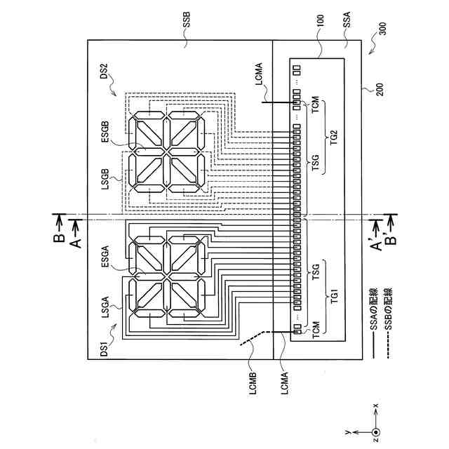 特許文献1には、対向する第1透明電極基板及び第2透明電極基板と、複数のドットとを含む液晶表示パネルが開示されている。各ドットは、対向配置されたセグメント電極及びコモン電極を含み、一方の電極が第1透明電極基板に配置され、他方の電極が第2透明電極基板に配置される。各透明電極基板においては、セグメント電極とコモン電極が混在している。即ち、複数のドットのうち一部のドットについては、第1透明電極基板にセグメント電極が配置され、第2透明電極基板にコモン電極が配置される。残りのドットについては、第1透明電極基板にコモン電極が配置され、第2透明電極基板にセグメント電極が配置される。