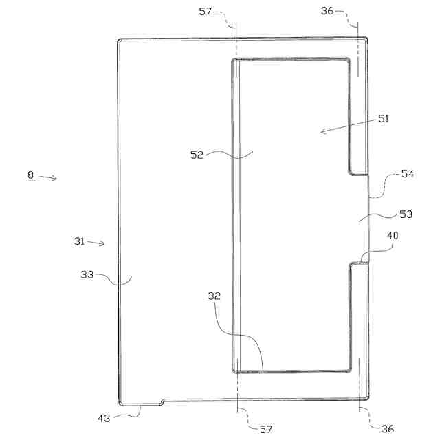 手段2.前記第2中心軸は、前記第1中心軸の延在方向に対して直交する方向において前記第1蓋体を3等分したそれぞれの領域のうち中央の領域に配置され、
