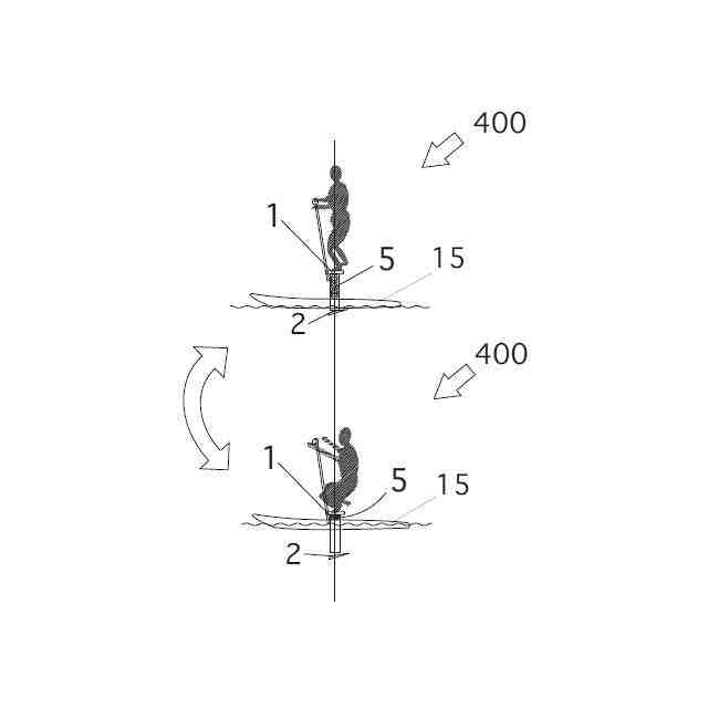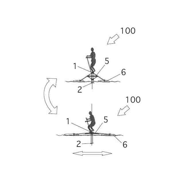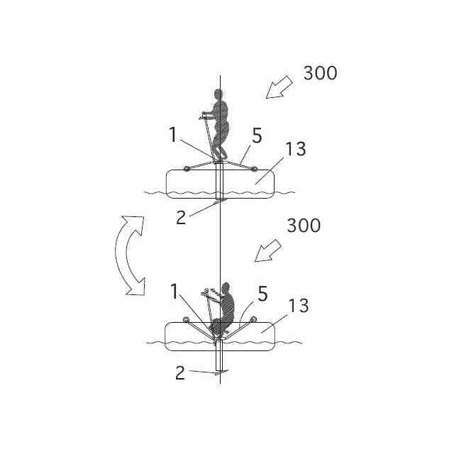 【解決手段】水面に配置される浮力体6と、浮力体より上方に配置され、乗り手が乗る踏板と、踏板から延びる軸部材に接続され、水中に配置される推進翼と、踏板の上下移動を補助する補助部材と、乗り手が掴むハンドルとを備え、乗り手が体重を使って踏板を踏み下ろすことで、踏板が下方に移動し、推進翼が沈み、前方に向かう推進力を発生し、乗り手が踏板から抜重することで、補助部材の補助により、踏板が上方に移動する上下振動翼推進人力艇。
