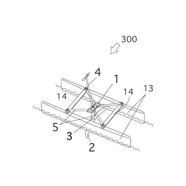 (4)補助部材は、基端が踏板に接続され、先端が浮力体に接続され、弾性変形可能な複数の弾性フレームであり、