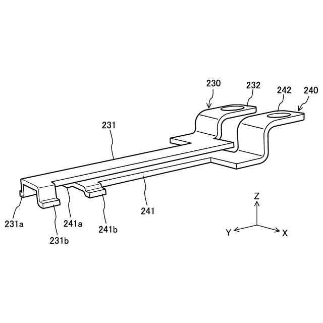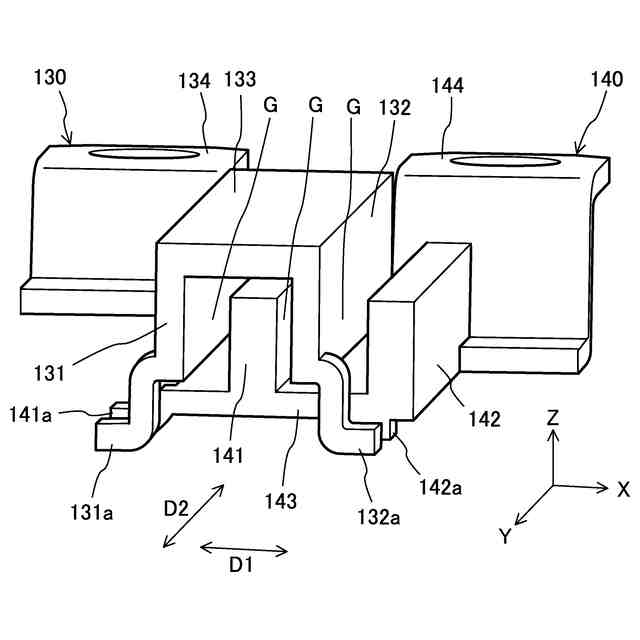 2つの前記他方の立ち上がり部は、当該2つの他方の立ち上がり部の前記交差する方向における前記基板側の端部に位置する支持部分とともにU字板形状を成す