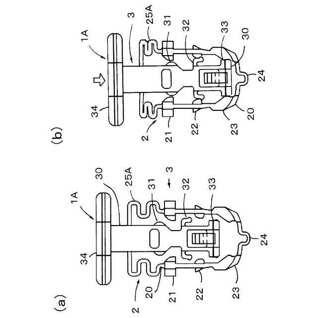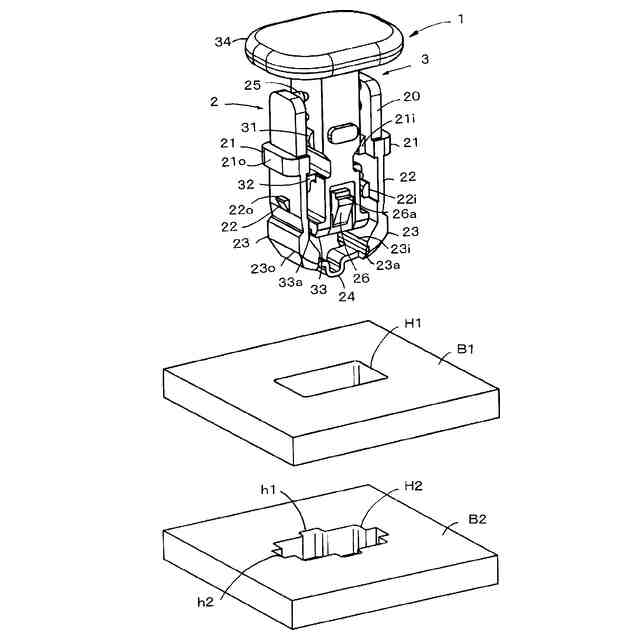 【解決手段】第1板部材B1と第2板部材B2を板厚方向に重ねて結合するラッチ1であり、両板部材B1,B2に開口された係合穴H1,H2に係合される複数の係合部21~23を備えるグロメット部2と、グロメット部2に対して押し込み位置と引き抜き位置の2つの位置に移動操作されるプランジャー部3を備える。プランジャー部3とグロメット部2は少なくともプランジャー部3が押し込まれる前は一体に連結された状態にある。プランジャー部3は、押し込み位置にあるときに複数の係合部21~23の係合状態を保持し、引き抜き位置にあるときには複数の係合部21~23の係合状態の保持を解除する係合保持部31~33を備える。