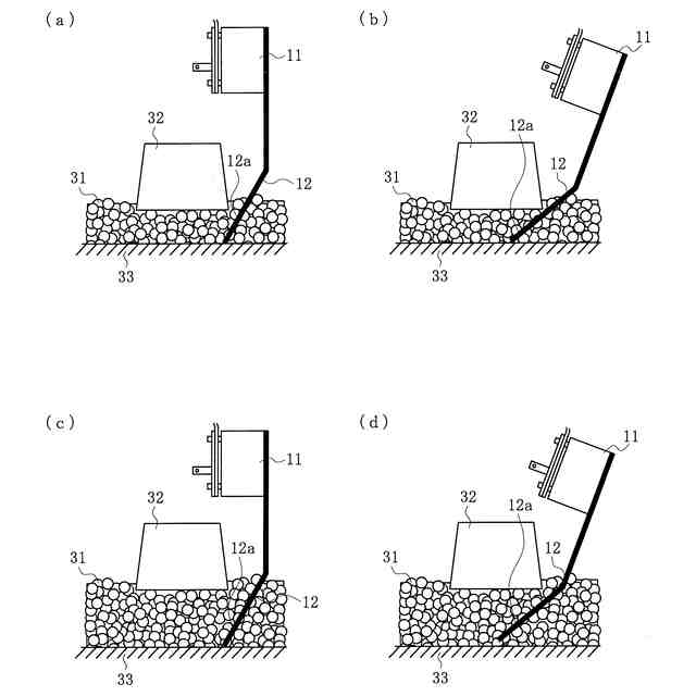 更に他のバラスト軌道つき固め装置においては、さらに、前記振動伝達部は、前記根本と先端との間に形成された少なくとも1つの曲げ部を含むヘラ状の部材である。