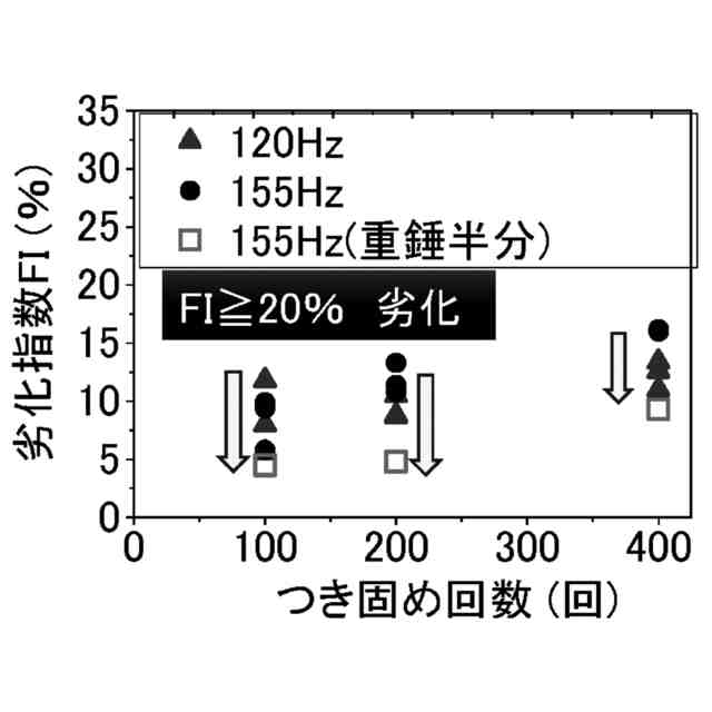 しかしながら、つき固め作業を実施するとバラストが破砕され細粒化されてしまう。そして、つき固め作業を繰り返すことによって、また、経年劣化によってバラストの破砕及び細粒化が進行すると、バラストの強度が低下して沈下が大きくなってしまう。