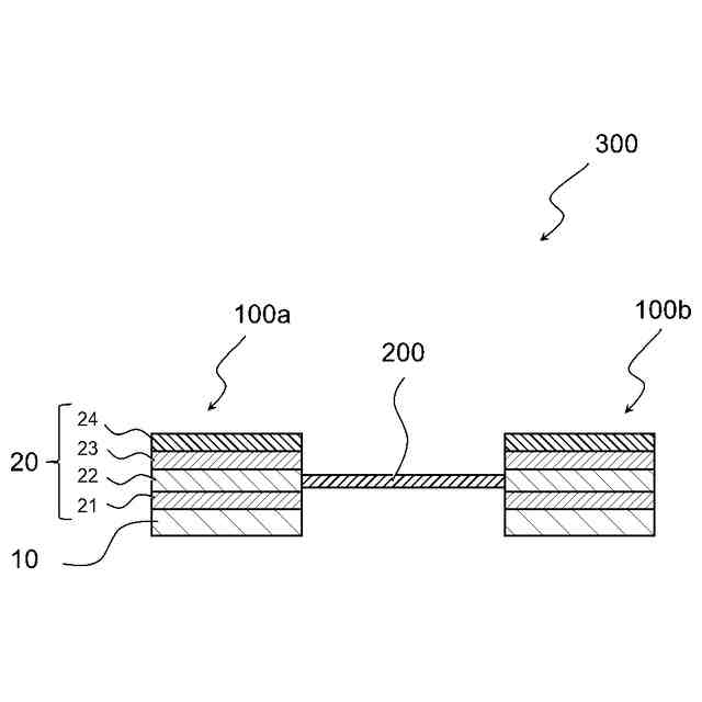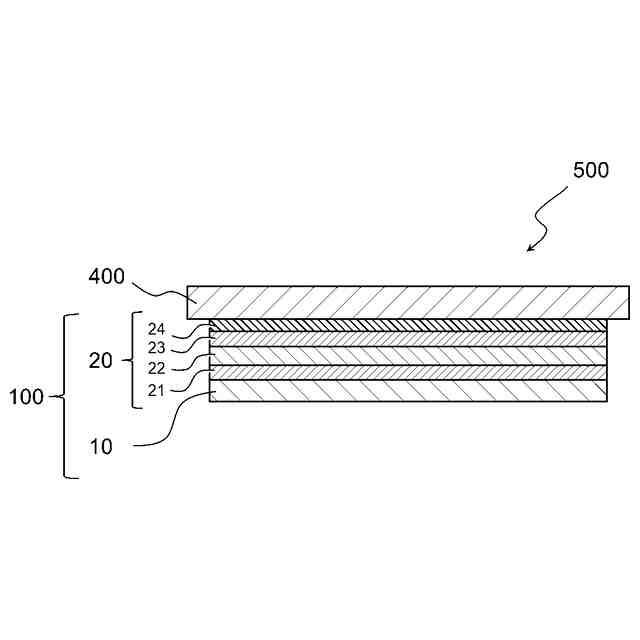 工程(A)における積層体の構造の一例を模式的に示した断面図である。