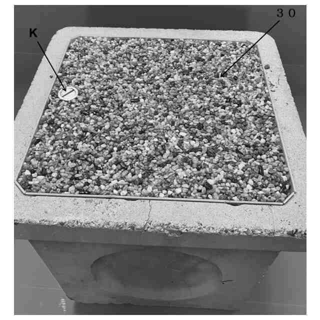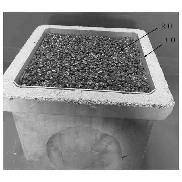 特許文献1には、金属製の縁枠(71)(括弧内の符号は特許文献1のものである。以下同様。)で囲われた空間に、骨材(21,31)が充填され、接着された骨材(21,31)の相互間隙間を水通路として作用させることで、集水桝などの排水設備の上部開口を覆う透水性蓋体を構成している透水性構造体(10)が記載されている。
