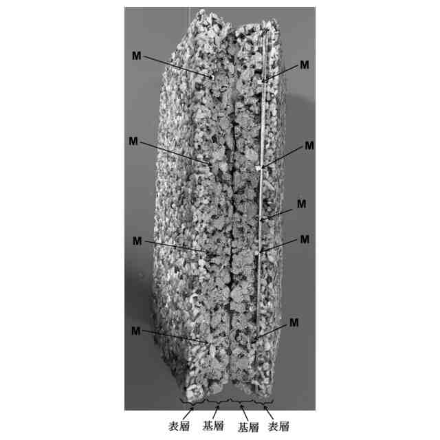 前記基層用の骨材及び前記表層用の骨材が硬化した後、前記型枠から取り外す工程とを備え、