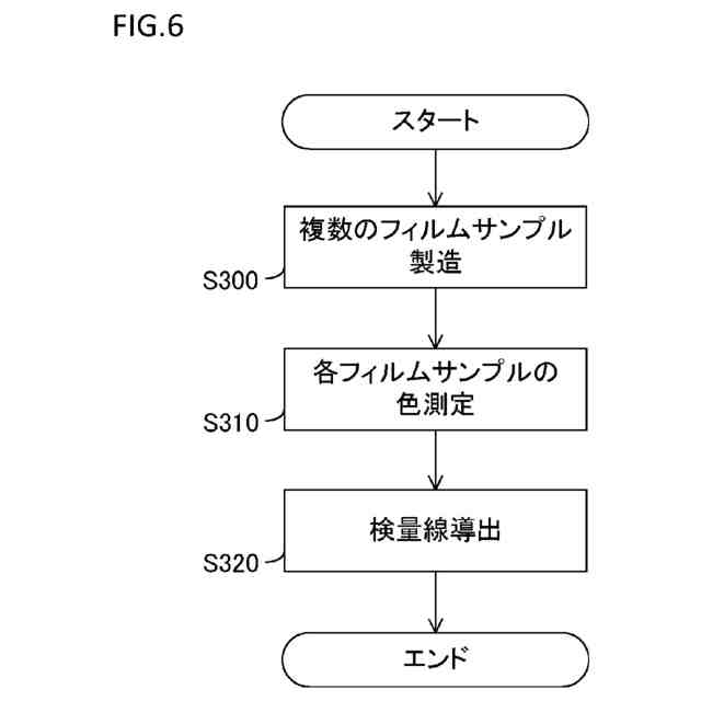 前記再生原料の含有率が互いに異なる複数のフィルムサンプルの各々の色に関する情報を取得する処理と、