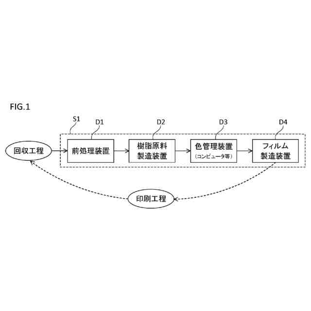 樹脂製のフィルム製品の多くには、柄が印刷されており、着色剤が含まれている。そのため、フィルム廃材等の樹脂廃材の多くにも、着色剤が含まれている。樹脂廃材を用いてリサイクルフィルムが製造される場合に、樹脂廃材に含まれている着色剤がリサイクルフィルムの色に影響する。リサイクルフィルムに含まれる着色剤の量次第では、リサイクルフィルムの色が商品としての許容範囲に収まらない。上記特許文献1は、このような問題の解決手段を開示していない。