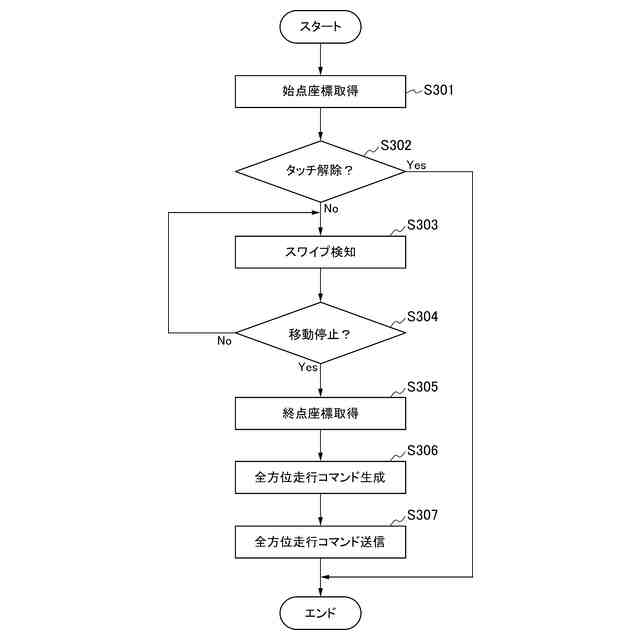 検知されたタッチのタッチ位置の移動に応じて前記ロッカーボギー車に動作を指示するコマンドを生成することと、