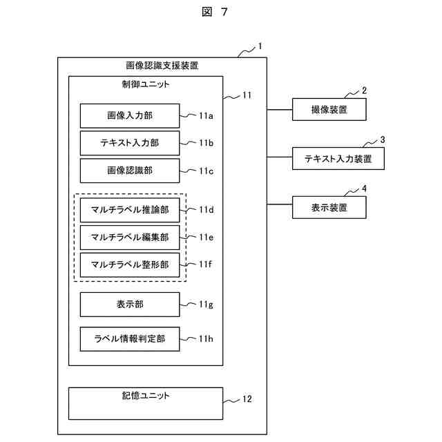 前記制御ユニットは、マルチラベル推論およびマルチラベル編集およびマルチラベル整形の各過程において出力されたマルチラベル情報とその処理過程を表示装置に表示する表示部を更に備えることを特徴とする画像認識支援装置。