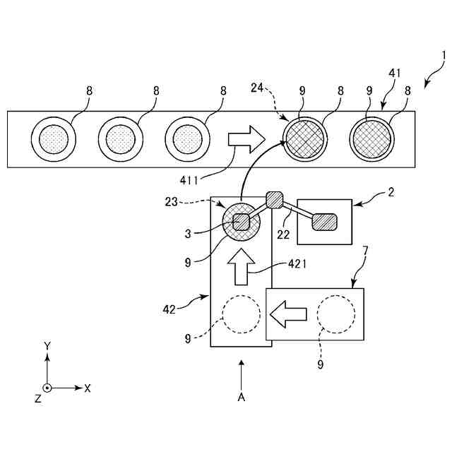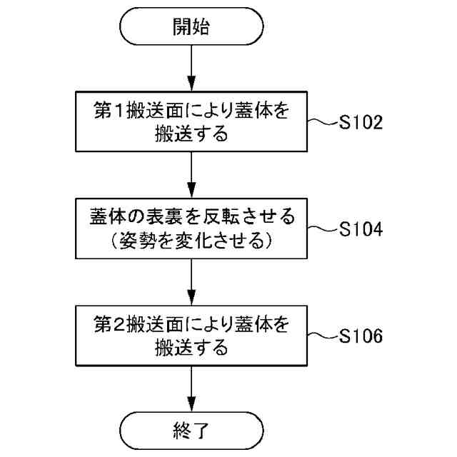 食品等を収容した収容体に、蓋体を被せて閉める蓋閉め作業においては、ストックされた蓋体を供給する際に、蓋体の表裏の反転が必要になる場合がある。しかしながら、蓋体の表裏を反転させるために、リンク機構のような複雑な機構が必要となりうる。このため、簡易な構成で蓋体の反転を行い得る装置の実現が求められている。