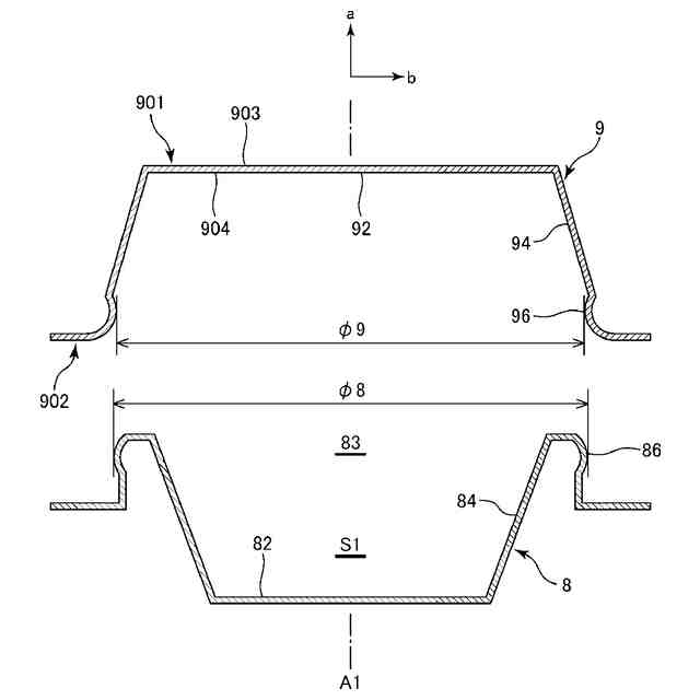 図1の蓋閉め装置による蓋閉め作業に供される収容体および蓋体の形状の一例を示す断面図である。