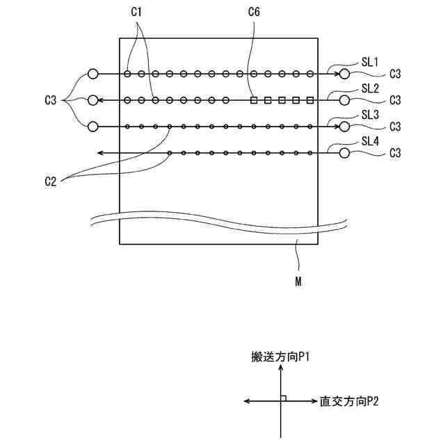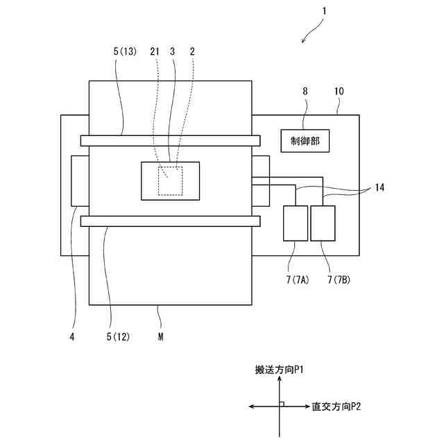 図1は、第1実施形態に係る液体吐出装置1(以下、「装置1」とも称する。)の概略構成を示す平面図である。装置1は、例えば、インク等の液体をヘッド2のノズル群21に含まれるノズル22(図4参照)から吐出(噴射)して、シート状の被記録媒体M上に文字や画像等を形成する印刷処理を行うインクジェットプリンタである。装置1は、シリアルヘッド式であり、被記録媒体M上に、ヘッド2のノズル群21に含まれるノズル22から液体を吐出して画像を形成する。