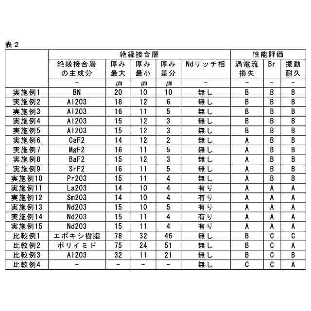 板磁石11は希土類元素を含む。絶縁接合層13の厚みTの最大値と最小値の差は、10μm以下である。