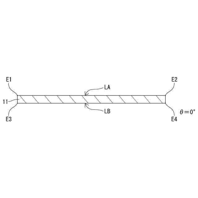 積層磁石10は、積層磁石断面を観察した場合に、複数の板磁石11の各々について、積層方向の一端側の表面の両端部E1,E2を結んだ第1直線LAと、他端側の表面の両端部E3,E4を結んだ第2直線LBのなす角度θである平行度を求めた場合に、複数の板磁石11のうちの1/3以上の平行度が3°以下である。