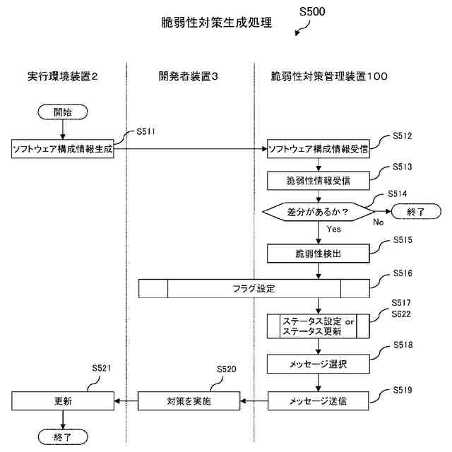 ソフトウェアの脆弱性に対する対策を管理する情報処理システムであり、