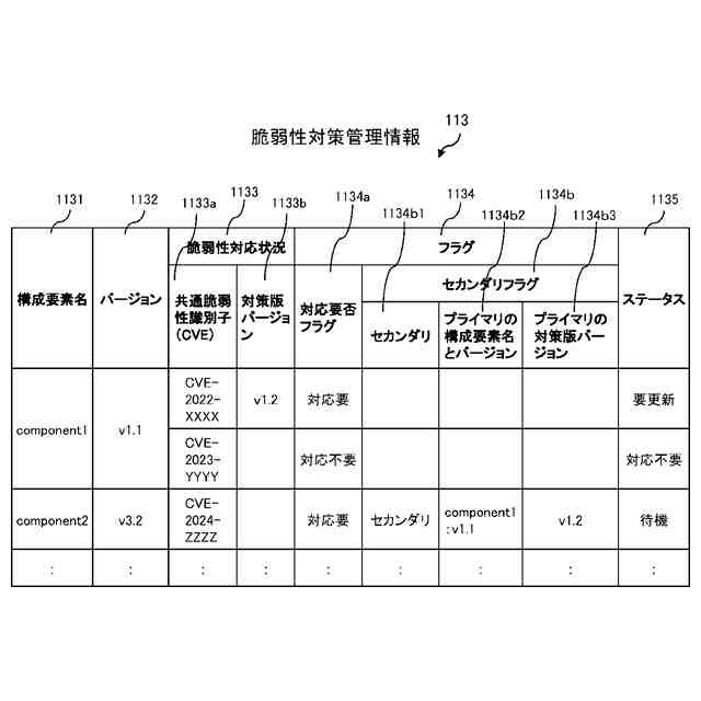 また、ソフトウェアの異なる構成要素が依存関係(包含関係、階層構造等)を有する場合、包含する側(又は上位)のソフトウェア(以下、「プライマリ」と称する。)の脆弱性については脆弱性の管理や対策がなされているが、包含される側(又は下位)のソフトウェア(以下、「セカンダリ」と称する。)については脆弱性の管理や対策が適切になされていないことがある。