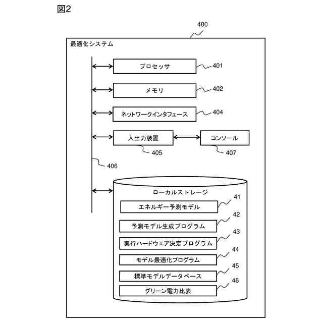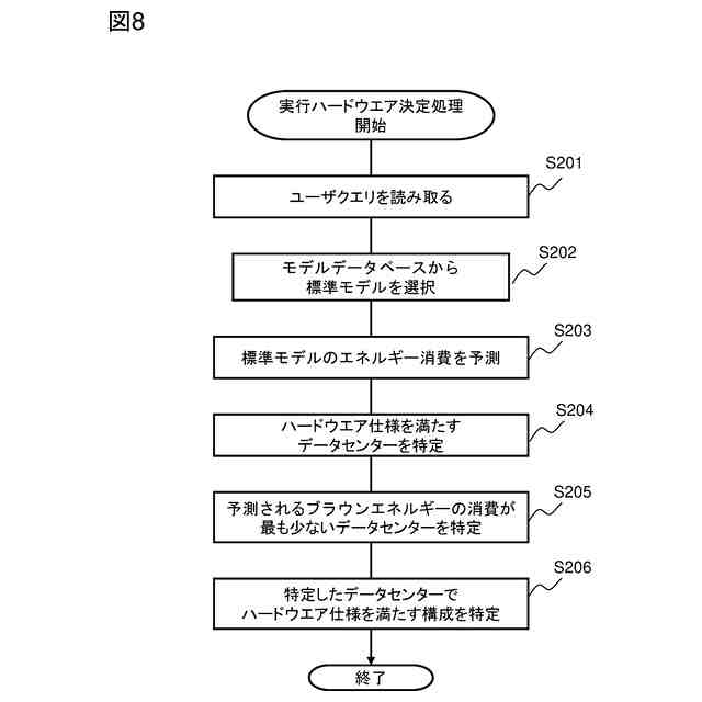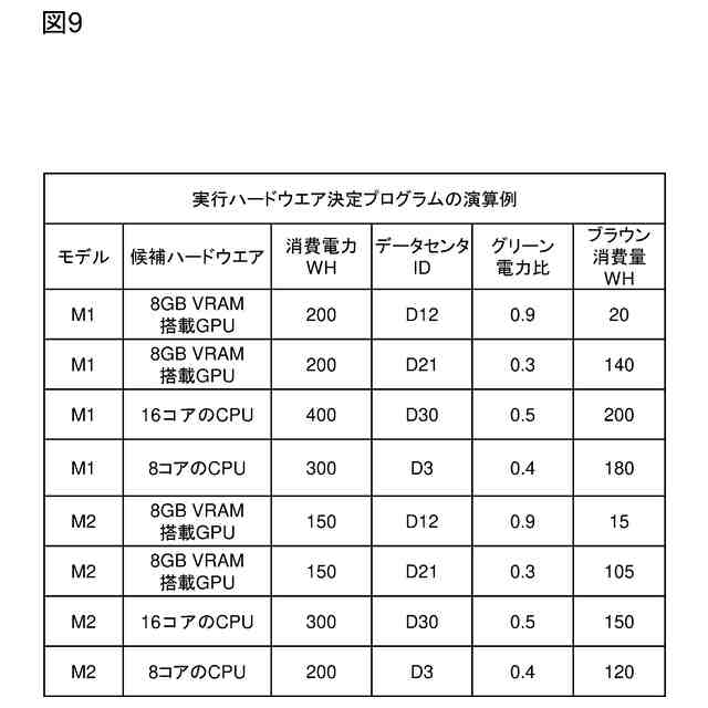 本明細書では、再生可能エネルギーを用いて生成した電気を「グリーン電力」と呼び、再生可能エネルギー以外を用いて生成した電気を「ブラウン電力」と呼ぶ。また以下では、グリーン電力とブラウン電力の比率を「グリーン電力比」と呼ぶ。電力構成比はたとえば0~1の値であり、0は全てがブラウン電力を意味し、1は全てがグリーン電力を意味し、0.5はブラウン電力とグリーン電力が半分ずつであることを意味する。たとえば風力、地熱、太陽光などを用いて生成された電気がグリーン電力であり、化石燃料を用いて生成された電気がブラウン電力である。本明細書では、ニューラルネットワークモデルを特定のハードウエアに対して最適化したモデルを「最適化済モデル」と呼び、最適化していないモデルを「標準モデル」と呼ぶ。