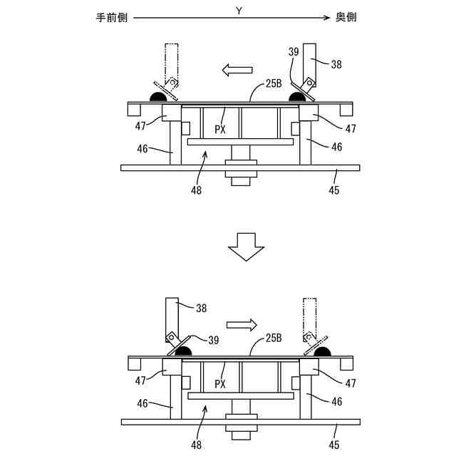 (1)本発明の印刷機は、Y方向に移動可能なスキージと、前記スキージを制御する制御装置と、を備える。前記制御装置は、前記スキージを基板表面又はマスク表面に先端を接触させた状態で前記Y方向に移動させて、基板の反りを測定し、その結果を表面実装機に出力する。(1)に記載の印刷機において、上記構成以外は、任意であり、いかなる構成でもよい。
