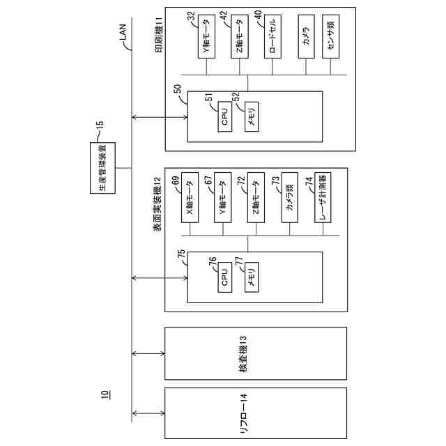 (1)の構成は、印刷機にて基板の反りを測定し、その結果を、表面実装機にて活用するが出来る。これにより、表面実装機の基板の反り測定時間の短縮化に貢献できる。