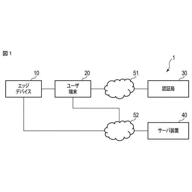 まず、第1実施形態について説明する。図1は、本実施形態に係る通信システムのシステム構成の一例を示す。図1に示すように、通信システム1は、エッジデバイス10、ユーザ端末20(クライアント端末)、認証局30及びサーバ装置40を備える。