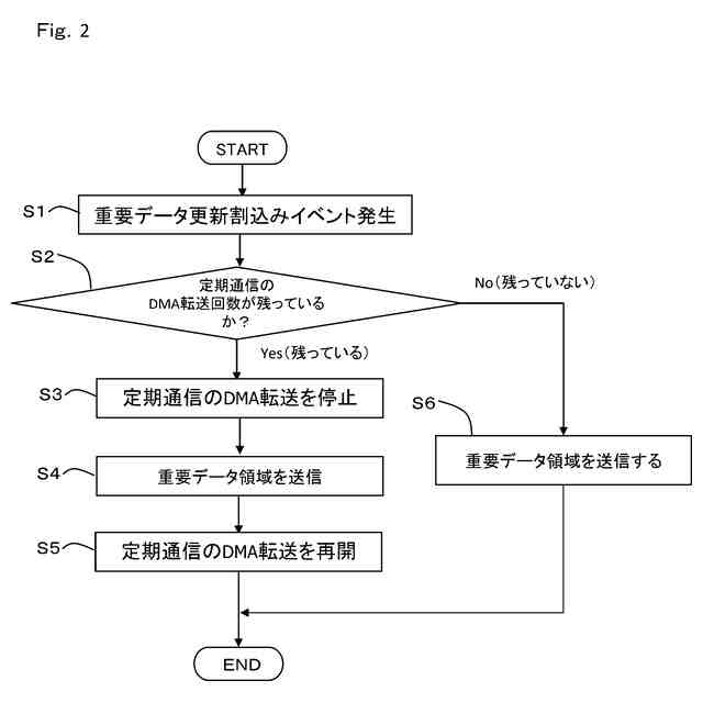 このように構成すれば、監視コアから通信インターフェース部に転送された重要データは、早期に他のマイコンに送信されることになり、その後にDMA転送が再開される。したがって、送信コアがマイコン間通信を行なうためのDMA転送を実行させる周期を維持しながら、他のマイコンに緊急に送信すべき重要データを早期に送信できる。