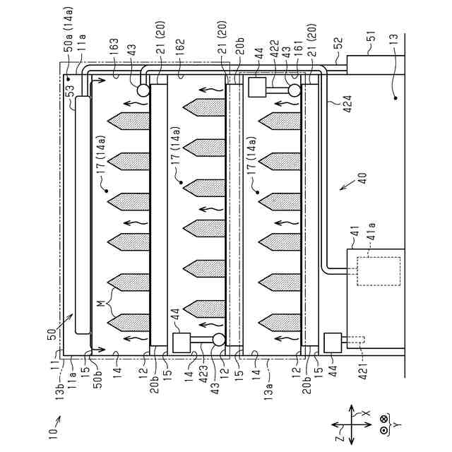 前記流路部材は、水平方向に延びる複数の流路形成材によって構成されており、