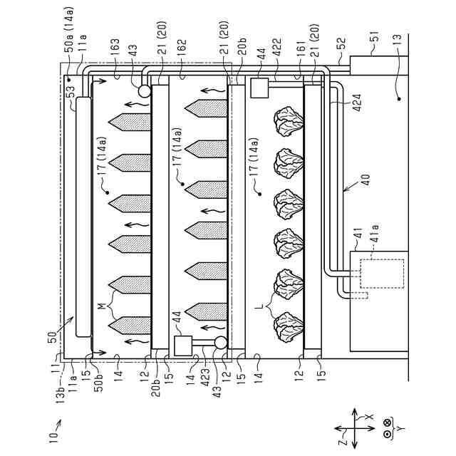 従来、茸や野菜等の栽培を室内で実施する場合、栽培物を配置するために複数の段を有する栽培棚を含む栽培装置が用いられる。栽培を実施する栽培室には、複数の栽培棚に加えて、室内の温度や湿度を調整するための室内空調設備が設けられる。各栽培棚に配置された栽培物は、室内空調設備により調整された環境において栽培される。