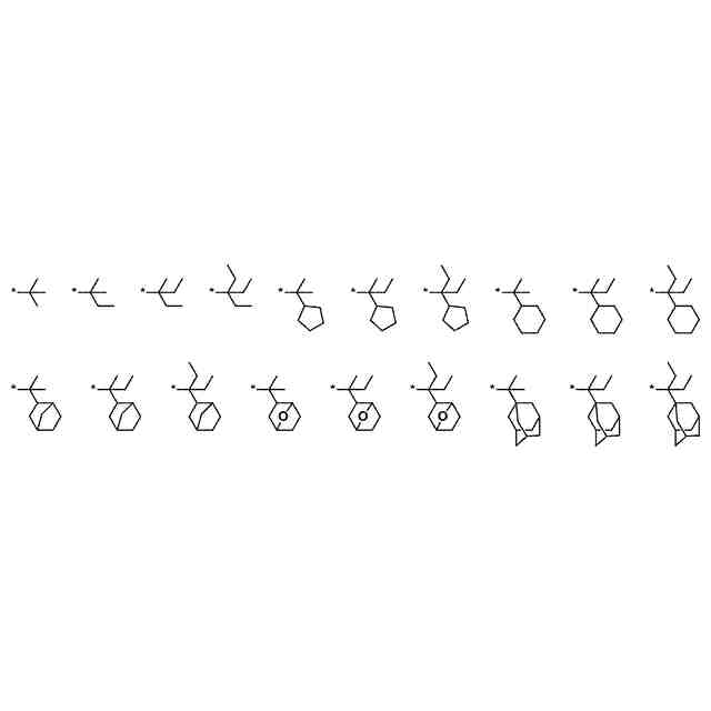 フッ素原子は、立体的に水素原子に次いで小さく、かつ疎水性及び親油性に優れる元素である。中でも、トリフルオロメトキシ基は、対応するメトキシ基と比較して著しく疎水性に優れる置換基として知られている(非特許文献2)。トリフルオロメトキシ基で置換された芳香族基を有する3級エステル型の酸不安定基(特許文献5)や3級エーテル型の酸不安定基が提案されている(特許文献6)。