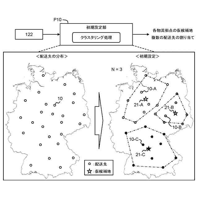 本開示は、地図上の複数の配送先の分布に対して物流拠点の候補地を探索する技術に関する。