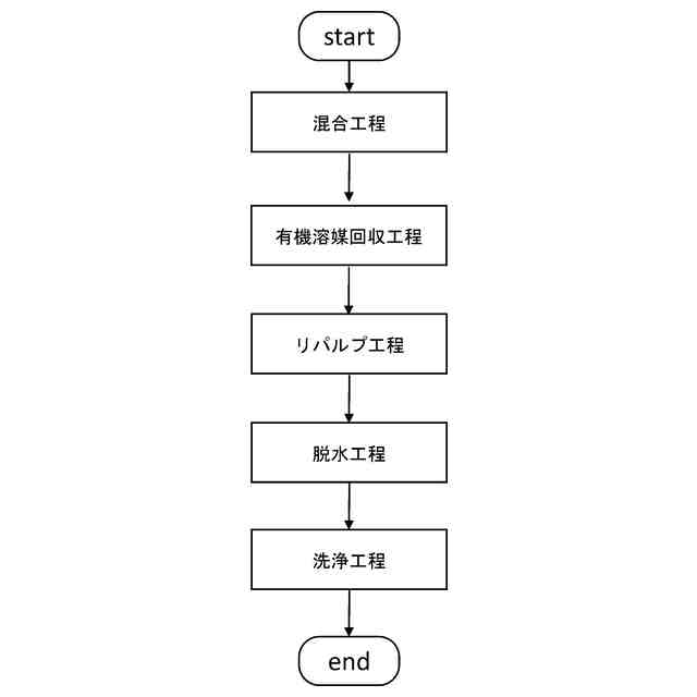 前記有機溶媒回収工程後に残るスラリーに対して水を用いて撹拌するリパルプ工程と、