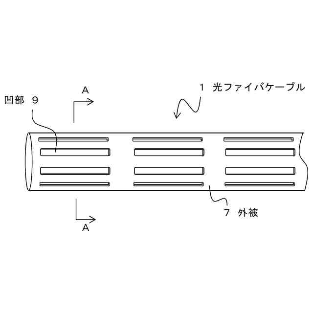 【解決手段】 光ファイバケーブル1は、例えば、スロットを用いないスロットレス型ケーブルであり、コア3、テンションメンバ5、外被7等により構成される。コア3は、複数の光ファイバ心線からなる。コア3の周囲には複数のテンションメンバ5が設けられる。テンションメンバ5は、光ファイバケーブル1の張力を負担する。コア3の外周には、外被7が設けられ、コア3は外被7によって覆われる。光ファイバケーブル1の軸方向に垂直な断面において、外被7の外周面には、周方向に複数の凹部9がほぼ等間隔で形成される。凹部9は、光ファイバケーブル1の軸方向に対して間欠的に形成される。