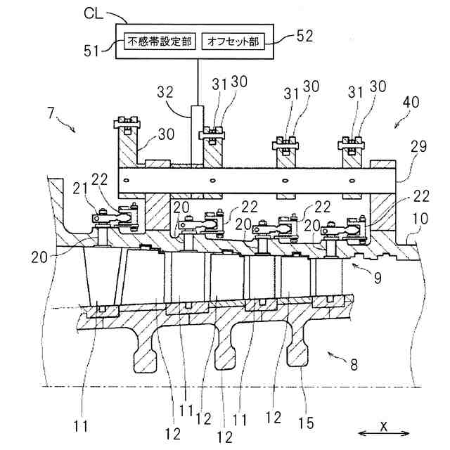 前記コントローラは、前記静翼を目的の取付角度に移動させた後、前記指令信号を無効にする不感帯制御を所定時間行う不感帯設定部と、